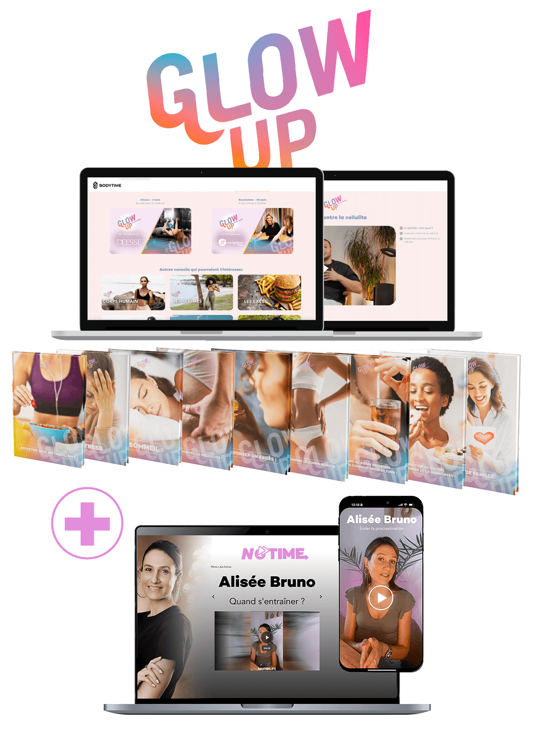 - PACK GLOW UP (Valeur 199€) = 18 modules (vidéos et Ebook) pour booster tous les aspects de ta vie : ANTI STRESS / SOMMEIL / ANTI CELLULITE / ANTI INFLAMMATOIRE,...
