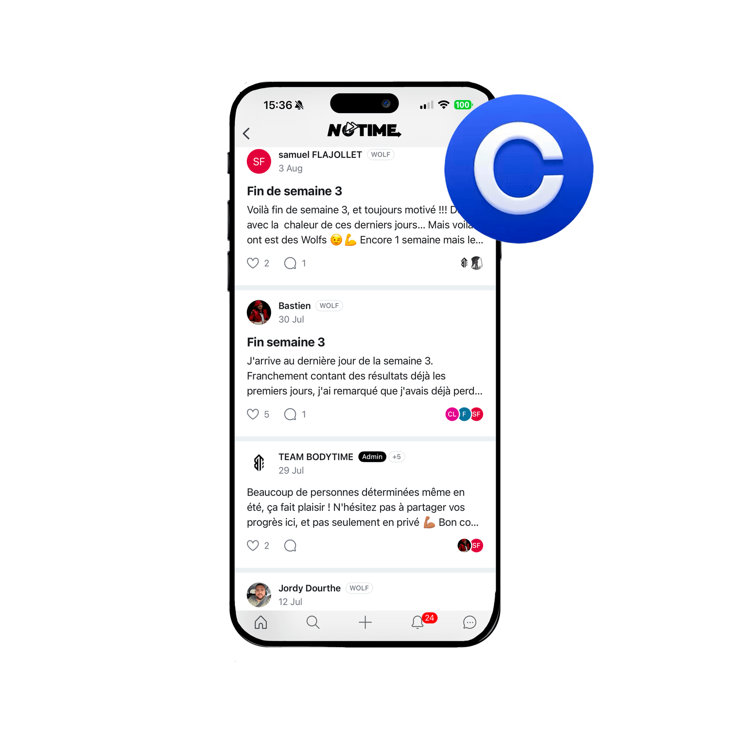 Pendant tout le programme tu auras accès au groupe privé avec toutes les filles, Alex & PJ, afin de se motiver et se surpasser toutes ensemble